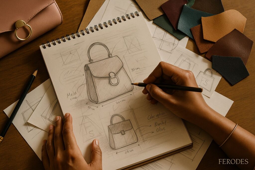 - Every Ferodes handbag is created under one roof — from the first sketch to the final stitch.